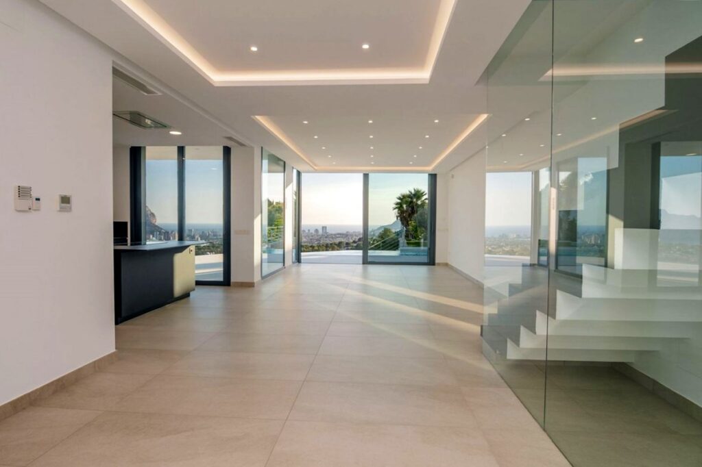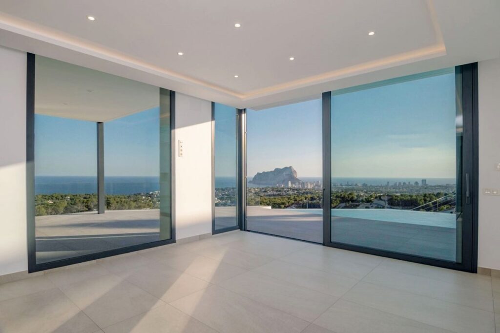 Carpintería exterior de aluminio blanco con doble cristal.