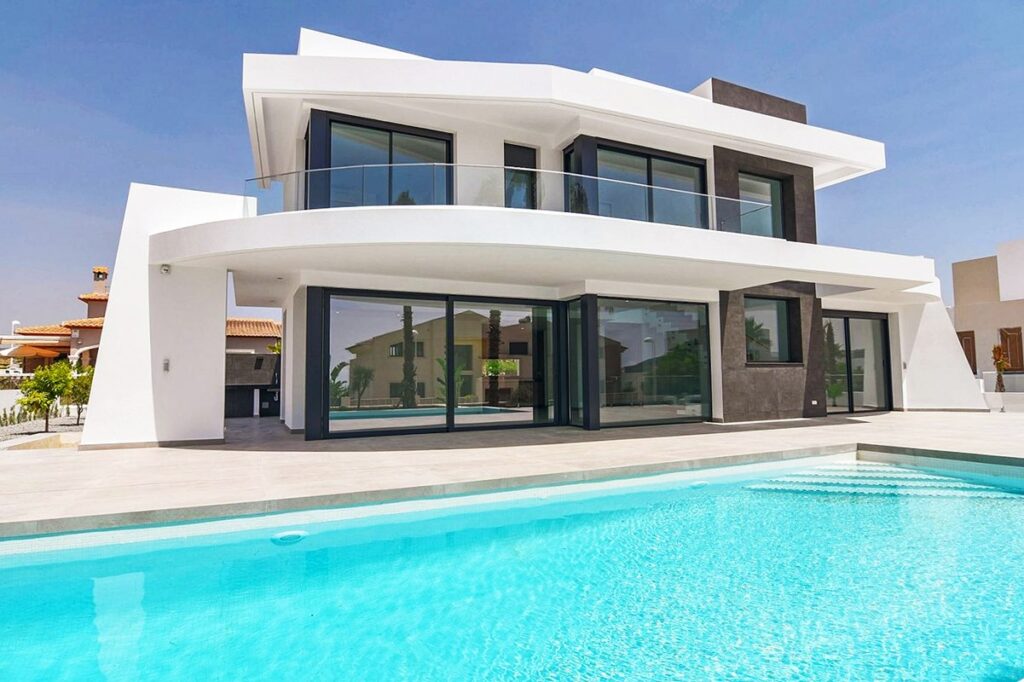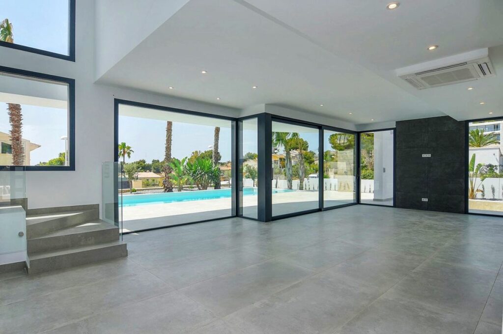Carpintería exterior de aluminio blanco con doble cristal.