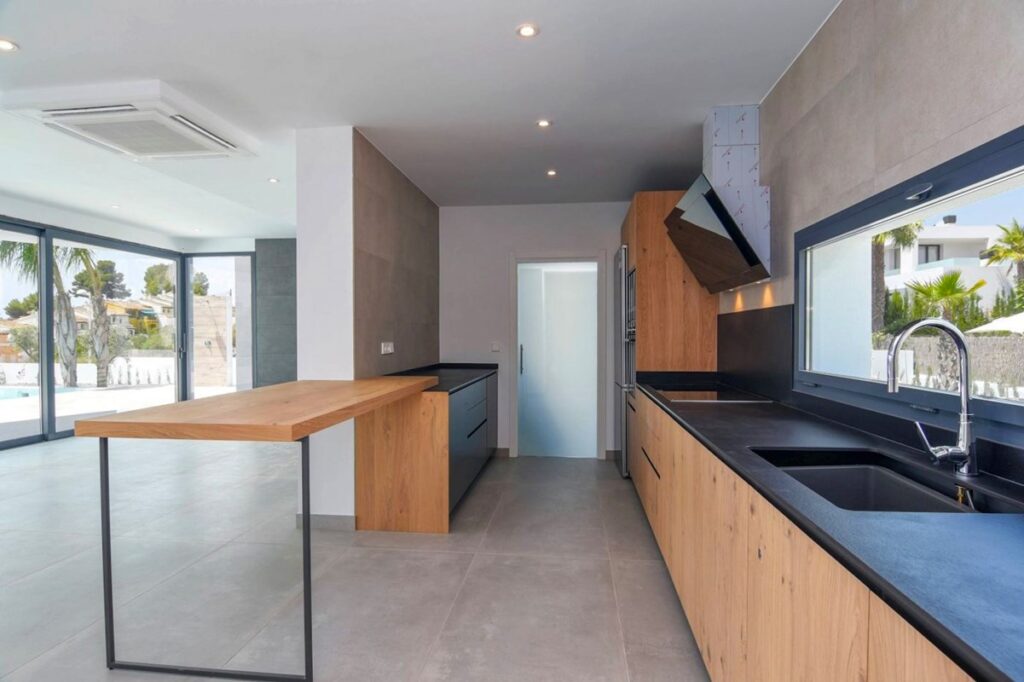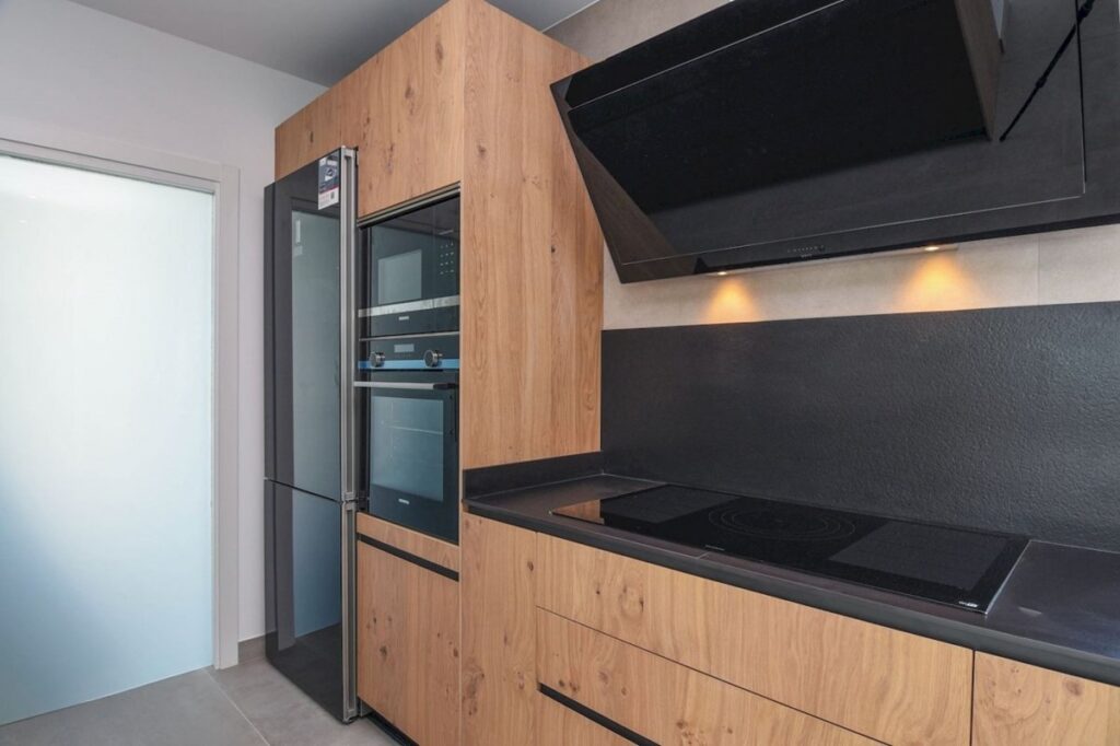 Carpintería interior y muebles de cocina de madera.